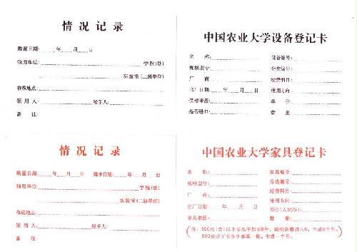 领取并填写《15vip太阳集团官网设备登记卡》或《15vip太阳集团官网家具登记卡》,按页首附图规范填写。