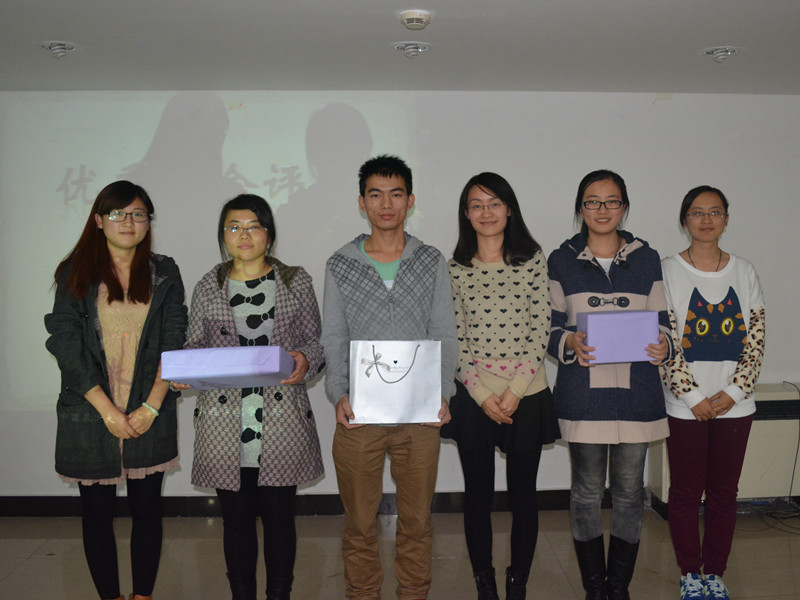 (摄影 王海玥 赵逸飞) 11月1日晚,由水院学生会举办的“优秀宿舍评比趣味答辩会”在公主楼三层就业中心培训室顺利举行。学生工作组老师杨梦云、何丽丽、曹泽璐、安欣及学生会主席沈月出席此次会议并担任评委。 本次优秀宿舍答辩会共有来自大二、大三两个年级的8个宿舍参与其中。经过宿舍风采展示、宿舍节目展示及趣味抢答三个环节后,A1817宿舍最终荣获冠军。 在宿舍风采展示环节中,每个参赛宿舍都用精心制作的幻灯片为大家介绍了自己的寝室生活。他们用一张张图片和一段段文字向在场的评委及观众们展示了各自的宿舍成员、宿舍环境、奖学金获得情况及日常集体活动等。在宿舍节目展示环节中,来自B1514的几位女生为大家献上了独家的自制爱心水果沙拉,而B1510则为大家带来了充满特色的方言大杂烩青春赞歌——《青春的诗》。其他各个宿舍精彩的表演同样得到了大家的欢呼与掌声,该环节也成为整个答辩比赛的亮点之一。随后评委根据每个宿舍所展示的具体情况提出了相应问题,参赛选手们的回答也都充分体现了所在宿舍的文化和特色。在接下来的抢答环节中,参赛选手活跃的表现也再一次点燃了在座观众的热情,现场气氛十分热烈。这次活动充分突出了一个主题——相聚是缘,宿舍是我们的第二个家。 最终,杨梦云、曹泽璐、何丽丽分别为获得本次比赛冠、亚、季军的A1817、3#1245和B1514颁奖。 活动最后,大家合影留念,本次优秀宿舍答辩圆满结束。 [实习学生记者 赵逸飞 报道] 编辑 王海玥