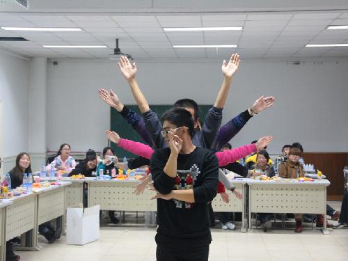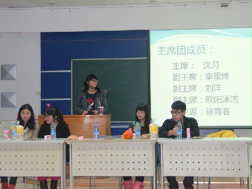 (摄影 张迪) 11月8日晚,太阳官网第三十一届学生会于水院304召开了新老成员见面会。院学生会主席沈月,副主席李星烨、刘洋、欧阳冰洁、徐青春,各部门部长、副部长以及干事们参加了此次见面会。 见面会以沈月的发言拉开序幕。她对新加入学生会的同学表示欢迎,并对学生会过去的工作给予肯定。她希望能与大家一起努力,共同进步,把学生会的工作做得更好。 紧接着,每个部门开始节目表演,现场笑声不断,气氛热烈。办公室准备的话剧表演《农大好情侣》使全场顿时High起来;心理部的歌唱表演《生活好多乐》使人陶醉在快乐的旋律之中;外联部的话剧表演《甄嬛传》让人在后宫佳丽三千的勾心斗角中欲罢不能。在这之后的“抢凳子”游戏中,新干事们通力合作取得胜利,并让沈月向一位新干事“表白”了一回。这个游戏拉近了大家之间的距离,增进了相互了解与情感交流。 随后,文生部带来的《第八套广播体操》勾起了大家对高中生活的回忆,学实部的“歌曲串烧”则让人想起了那些年大家一起唱过的歌。作为小插曲的游戏“萝卜蹲”,同样给在座同学带来了阵阵欢笑。在宣传部的歌舞表演《青花瓷》结束之后,体育部全体新干事演绎了话剧《史上最纯洁的童话故事》。该剧彻底颠覆了传统模式,以复杂的人物设置,搞笑的故事情节和无厘头的表演将整个会场气氛推向了高潮。 最后,第三十一届学生会全体成员合影留念。 [实习学生记者 余鹏鹏 报道] 编辑 陆婉颖