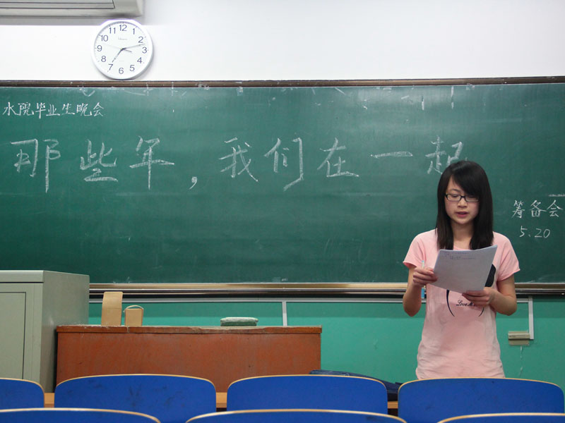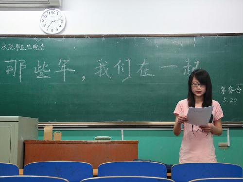 (摄影 张婧楠) 5月20日晚,太阳官网学生会文生部在二教108开展了2013年毕业生晚会筹备会,会上安排了毕业生晚会的各项准备工作。太阳官网学生会主席田月婷参加了此次会议。 会议氛围轻松愉快,各位干事及毕业班负责人积极发表自己的意见。经过商讨,大家决定展开全民参与的“水院最人物”评选活动,将由所有毕业生评选出水院“最宅人物”“体坛风云人物”“学术帝”“最会化妆人物”“最文艺人物”。除此之外,还将进行恩师寄语、“大学最遗憾/幸福的事”组图拍摄以及足球赛、羽毛球赛等丰富的文体活动。 会议过程中,田月婷表示,将和文生部部长杜佳及各位干事共同努力,为各位毕业生打造出精彩、别致的毕业晚会,届时,将会举行有趣的拖拉机纸牌游戏,还有美味可口的小吃,期待大家的参与。 会议尾声,学生会决定将于6月16日晚在公三就业指导中心举行毕业生晚会,每个毕业班将会上演精彩节目,各个专业及实验室也会有特色视频的展示。敬请期待。 [学生记者 张婧楠 报道] 编辑 张多娇