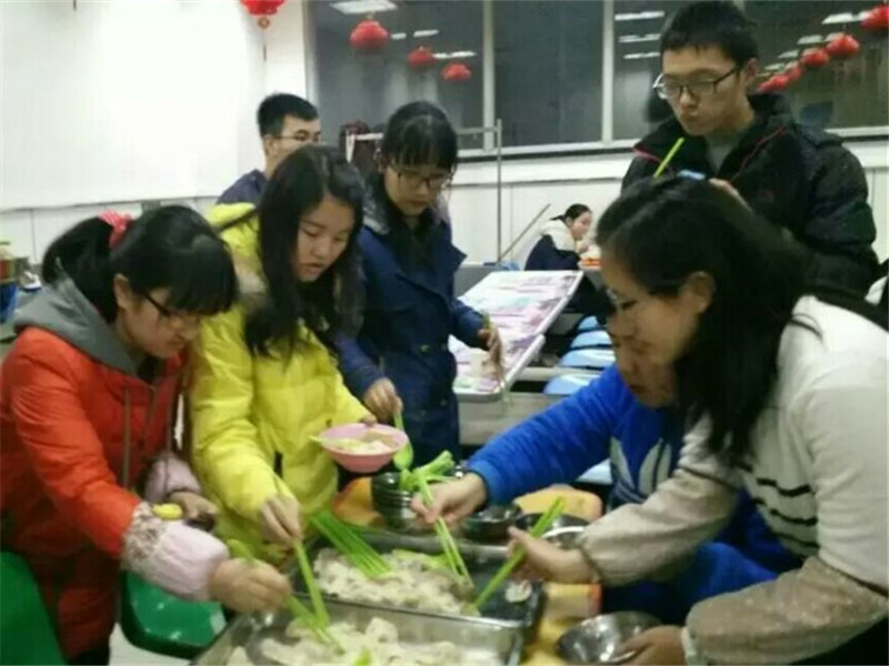 (摄影 刘佳豪) 2016年1月3日,在元旦假期期间,由于大多数人离家太远,水利153班团支书组织了一次班级集体包饺子活动。同学们请来了班主任李芳芳老师来擀皮,导员来包饺子,大家集体参与到活动中来,感受到了温暖和欢乐。 当天下午三点半,同学们约在公一食堂进行包饺子活动,面和肉酱已和食堂的叔叔阿姨商议好弄来了,而且为新疆的一个同学特地准备了清真的馅。面对一团团白面,三大盆肉酱,同学们一个个都撸起袖子,争先恐后地去洗手擀皮,开始包饺子。班主任率先拿起擀面杖开始熟练的擀面皮,几个北方的同学也纷纷拿起剩下的面团各自开工了。同学们擀的面薄厚不均,还有几个男生甚至拿起筷子开始擀面,引起一阵笑声。来自南方的同学包的饺子成了大家吐槽的对象,有的故意做成了花,有的包成了一个小包子,还有同学因为不会包,又怕把肉馅给漏了,把饺子的边反过来折了一道。大家边包饺子,边讨论最近的事,其乐融融,画面十分温暖。在食堂工作人员把饺子蒸熟后,同学们兴奋地围坐在一起吃饺子,因为是集体辛劳的成果,所以大家感觉味道格外可口。 期末考临近,这样一次有意义的活动在给了同学们一次放松机会的同时,增进了班级的感情,也让大家接下来继续努力,团结向前。活动结束后,导员和同学们纷纷在班里的QQ群里表示感谢,并希望以后能有更多有趣的集体活动。 [戴林潼 报道] 编辑 王淑萍