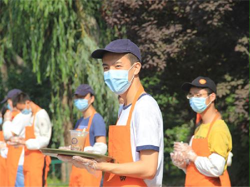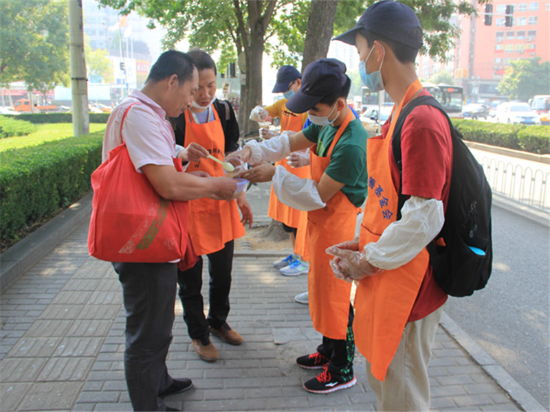 (摄影 蒋哲) 5月28日一早,土建151班的同学乘着开往清华园的公交车,开始了一天的团日活动。此次团日活动是为路人提供一杯爱心粥并为他们送上祝福语,通过爱心粥传递爱心,让喝粥的人们在温暖、友爱、和谐的氛围中迎来美好的一天。 到达清华园后,北京市仁爱慈善基金会为同学们准备了早餐。据了解,北京市仁爱慈善基金会自2006年成立以来本着“传播慈善文化,弘扬慈善精神,推动扶贫救助”的宗旨以及“人人享有慈善,仁爱触手可及”的理念开展了“仁爱助学”“仁爱心栈”等项目,受到政府和群众好评,奉粥活动便是“仁爱心栈”的一部分内容。之后,两位志愿者教我们练习了《仁爱之歌》的手语操,让大家在美妙的歌声中体会爱的美好。手语操结束之后,大家在志愿者刘小隐的带领下开始了今天的奉粥活动,活动主要的主要服务对象是社区的早起上班族和做饭不便的老人。奉粥活动主要分两部分:一是为拿饭盒的居民盛粥,二是把粥装杯子里,提供给路过的人。在奉粥时,志愿者首先面带微笑向路人问好,然后以感恩心双手捧杯,三十度鞠躬奉上爱心粥,最后再为路人送上祝福语。活动过程中,接过粥的路人都表达了感谢之情,还有路人希望加入志愿者行列中来传递这份爱心。 奉粥活动结束之后,同学们以及其他志愿者都分享了这次活动的感受与收获。在这样一个温暖友爱的环境中,志愿者体会到了奉献带来的快乐,同时也提高了自己的能力与信心,大家都表示希望可以在以后的生活学习中积极帮助他人,不断地将爱心传递下去。活动最后大家合影留念,此次团日活动至此圆满结束。
