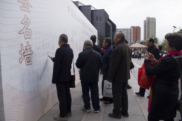 农田水利67届校友,相别五十载,恰逢母校112年校庆,祖国八方四面,温暖着爱的相聚,任凭光阴似箭,还是老地方见! 金色的风景歌颂金色的希望,校友们走过主楼的一瞬,挺拔的枫树也会俯下身子,缩近与他们的距离,仿佛那就是当年学子们背负着满载的书本,熙来攘往的身影。他们也会哼唱起熟悉的旋律,笑谈那些日子的欢欣与惬意。 50年过去了,一教(东楼)门口的花开了又谢,经历了几十个轮回;曾经的黄泥土路,如今已污泥不在;那几棵挺拔的大白杨,当年还只是几棵稚嫩的小幼苗呀······唯有那岿然矗立的东楼,它沧桑的模样也许就是校友们对峥嵘岁月的念想。 你们在它的怀抱里谈论着自己的曾经,那间教室给您留下过宝贵的回忆,您又在哪间教室学到了您受用终身的知识·······亦或许您就是在那里遇到了志同道合的伙伴,而今故地重游,携手在楼前留念。 又逢喜事,水院人再次欢聚一堂,院长严海军、分党委书记沈立峰喜迎校友返校,代表学院向校友们关心和支持水院发展表达最真挚的敬意和谢意。 “你看看,那时候我们班有那么多人,今天回来了这么多,真不易!” “这是当初我的学号,这么多年过去了,都快要记不得了哟!” “我的好姐姐,这些年还好吧?今天能看见你,可真是高兴呀!” 同学相见,激动不已,这一抱,竟刺破了五十年的光阴。蓦地想起那时生活的点点滴滴,不禁两人都将手搂得更紧了。 “每一位亲爱的老师,我们谢谢您!”师生情,一辈子!不管学生是否也已上了年纪,学生心中,老师永远是最敬爱的长辈。手虽轻轻握,心却紧紧连。 五十年后再走进水院实验室,是否勾起了您对当年办学条件的回忆?干净整洁的实验室,整齐划一的器具,专业的设备,后辈学子的风貌······ 在这堵校友墙上签上自己的名字,让它表达出校友对母校不变的情谊。 忆昔年,恰同学少年,风华正茂。 看如今,聚农大故土,满怀温情。 一次相聚,是为了下一次再相聚!