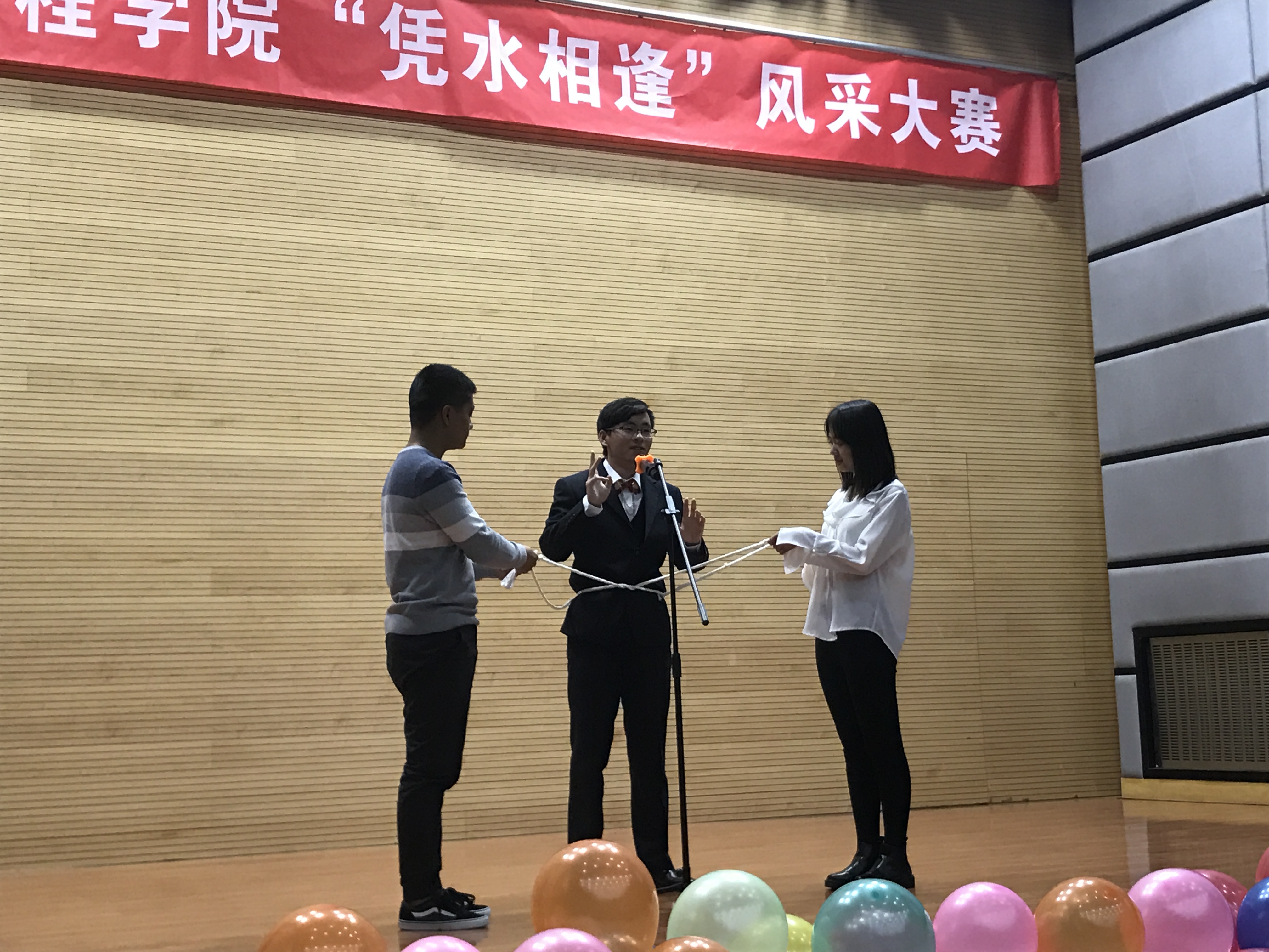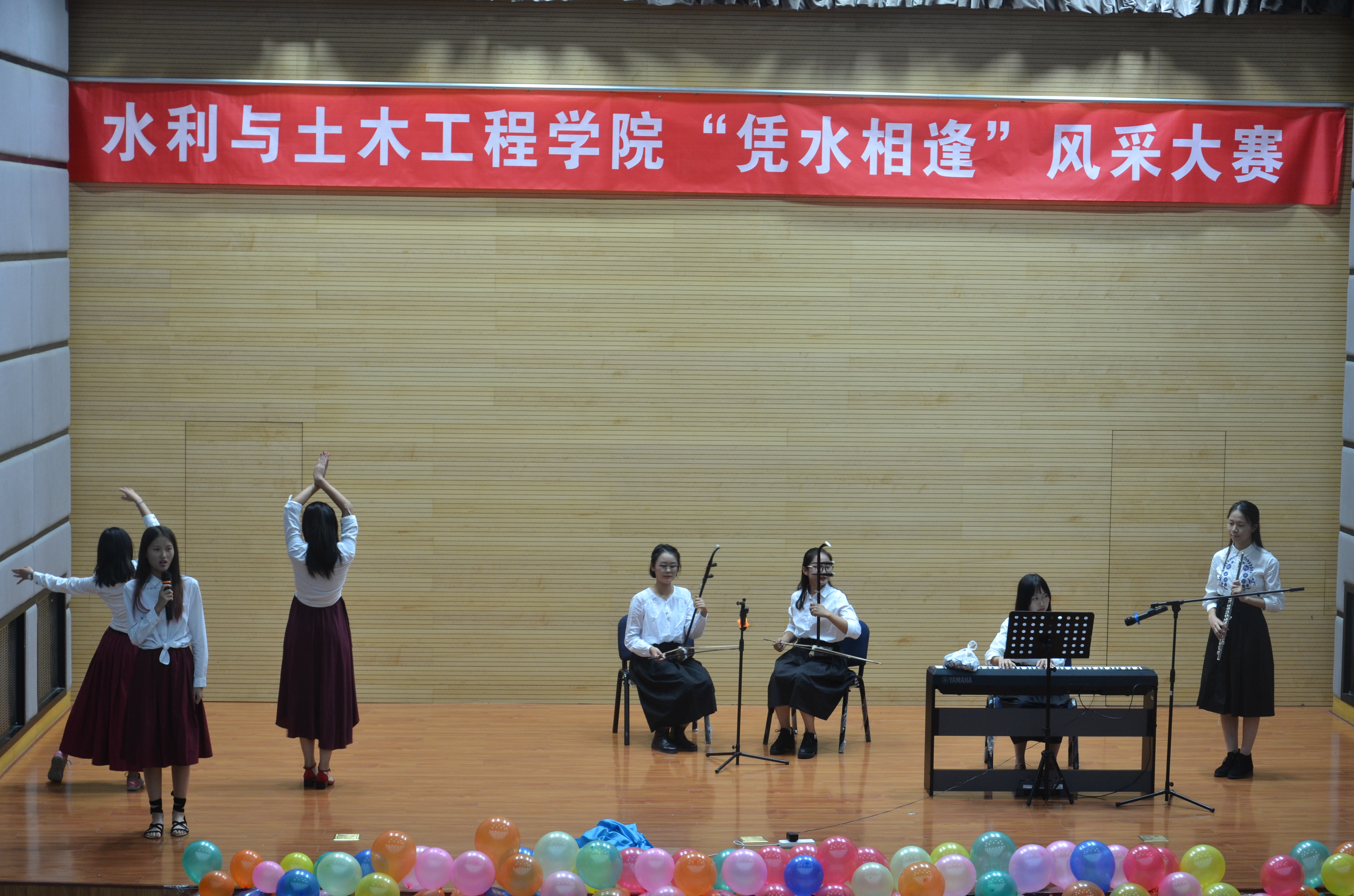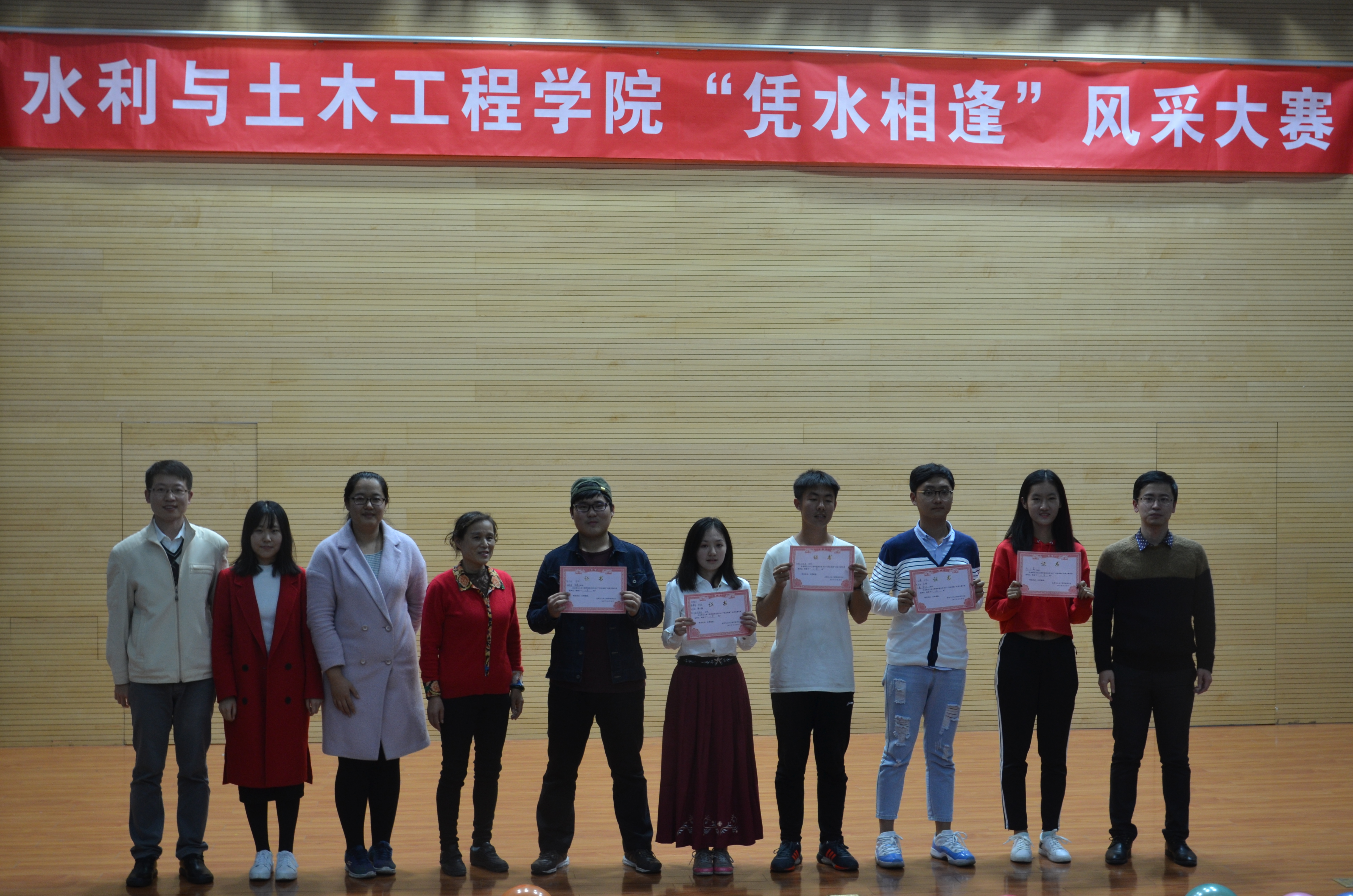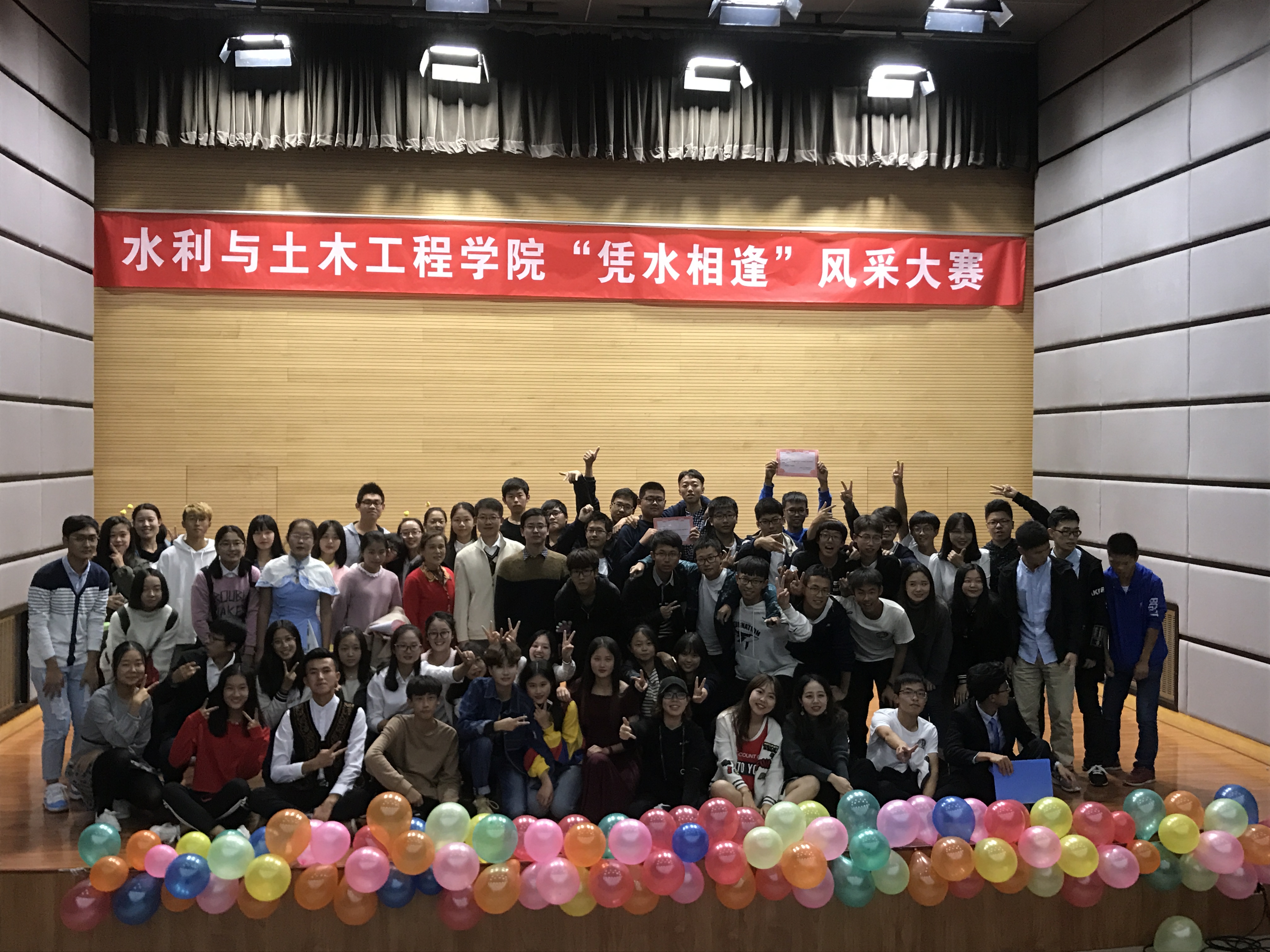 为丰富2017级新同学们的校园学习生活,展现水院学子乐观自信的青春风采,10月20日晚,学院成功举办了2017年“凭水相逢”学生风采大赛。副院长华博出席活动并致辞。水利172班刘翔、土木171班史钦豪联袂主持。 华博同现场的同学们互动。他表示,学院领导、老师都非常重视关注同学们在校园学习生活成长的方方面面,鼓励大家珍惜韶华、乐观自信,勇于为实现美好梦想一步一步地努力奋进。他还带领大家高喊三声“加油!”,为当时正在激战的水院新生篮球队队员呐喊助威,为现场的每位参赛选手鼓励打气,为水院新生运动会健儿加油祝福。 比赛中曲艺形式多样,20个个人与团队参赛节目相得益彰,同学们演绎得尽心尽情。极具动感的现代舞蹈、幽默逗乐的传统对口相声、感人至深的原唱校园歌曲、美轮美奂的民族舞蹈与乐器演奏、神奇的近景魔术同临时参与助演的“吃瓜萌众”、歌舞升平的舞台剧、活泼的动感说唱、合唱节目,还有本科高年级、研究生学长学姐的倾情献艺等等,两个半小时的比赛充分展示了水院同学们的活力和风采。 活动期间,“CAU水院人”微信平台还同步播报现场节目评价等互动情况,现场观众们充分表达了心声和热情,不时欢呼呐喊,意犹未尽。 最终一等奖由水利172、173和174班合作的民乐演奏与民族舞蹈《大鱼》斩获。二等奖则颁给了农建172班的音乐剧《即兴大杂烩》、水利174班大合唱《相亲相爱》。土木171班的舞台剧《同桌的你》、水利171班赵之菡的舞蹈《SUGAR》和土木171班史钦豪的原创校园歌曲《校园随想》荣获三等奖。另外,太阳官网少数民族同学为主编排的舞蹈《黑走马》获得最佳组织奖,农建2017级硕士研究生朱宸萱的舞蹈《一分一秒》凭借超高呼声获得最佳人气奖。 《黑走马》的表演者包括了来自水院、农院、经管和动科学院的12名新疆少数民族同学们,他们用精心准备的民间舞蹈表达了新疆少数民族同学和其他民族同学一道,要“像石榴籽一样紧紧抱在一起”,为促进各民族交往交流交融而努力。 水利174班全班同学表演的合唱《相亲相爱》让“团队作战有力量”发挥到了极致,也为本届大赛画上完美句号。刚刚凯旋的水院新生男子篮球队员们上场致谢把活动推向了又一次高潮。比赛尾声,主持人发起倡议,约请全体2017级新同学们在水院坚定目标,刻苦学习,努力拼搏,展现所长,历练完善,追求青春向上,为自己添彩、为水院争光。 土木171班主任张心平,学生教育管理科科长、党务秘书黄振翔,分团委书记王胜男、辅导员张庆辉、闫婷婷,各班级辅导员班助同2017级新生同学们共同参加了活动。