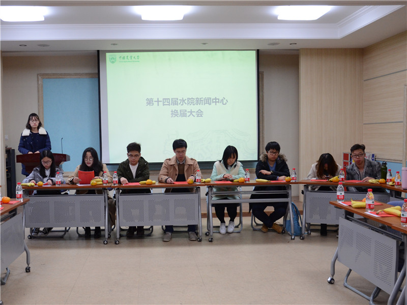 (摄影 罗琳) 11月3日下午,水院新闻中心第十四届换届大会在水院楼304召开。学生教育管理科科长黄振翔、新闻中心指导老师闫婷婷出席了本次会议,会议由新任办公室主任莫尧主持。 第十三届新闻中心主任雷承丰以“传承”和“突破”为主题,从内部建设、系统制度、特色活动等方面对一年来的工作进行了梳理和总结,并祝福新闻中心能够不断学习进步,再创佳绩。 随后,黄振翔宣布换届结果,对新当选的主任、部长表示祝贺。黄振翔强调,新闻宣传工作要把贯彻落实党的十九大精神作为首要任务,要紧紧围绕学院中心工作唱响主旋律、汇聚正能量,通过报道全院师生在党建、教学、科研、人才培养等方面取得的成绩为学院发展事业加油鼓劲,做大做强正面宣传,壮大主流思想舆论。他以具体事例从思想认识、业务素质、学习途径等方面对新闻中心的工作提出了要求,“能力在实践中才能提升”,他鼓励大家要抓住各种机会多学多练多思考,学院也将提供资源加强新闻业务能力的培训,共同努力写好水院故事,传播水院好声音。 新一届新闻中心主任杨欣欣和部长代表赵萍楠表示要以“服务学院,提高自己”的态度,积极思考,敢想敢干,继续前行,努力成为一名合格的新闻人,为学院的宣传工作贡献力量。水院学生会主席卢娜、分团委副书记安星润发言希望水院学生组织间加强联系,共同发展进步。 会议还为上一届优秀记者颁发了荣誉证书,随后,由校记者团团长罗元颖为全体记者开展新闻摄影专题培训。 水院新闻中心第十三、十四届全体成员参加了换届大会。 [实习学生记者 张歌 报道] 编辑 李智 审核 黄振翔