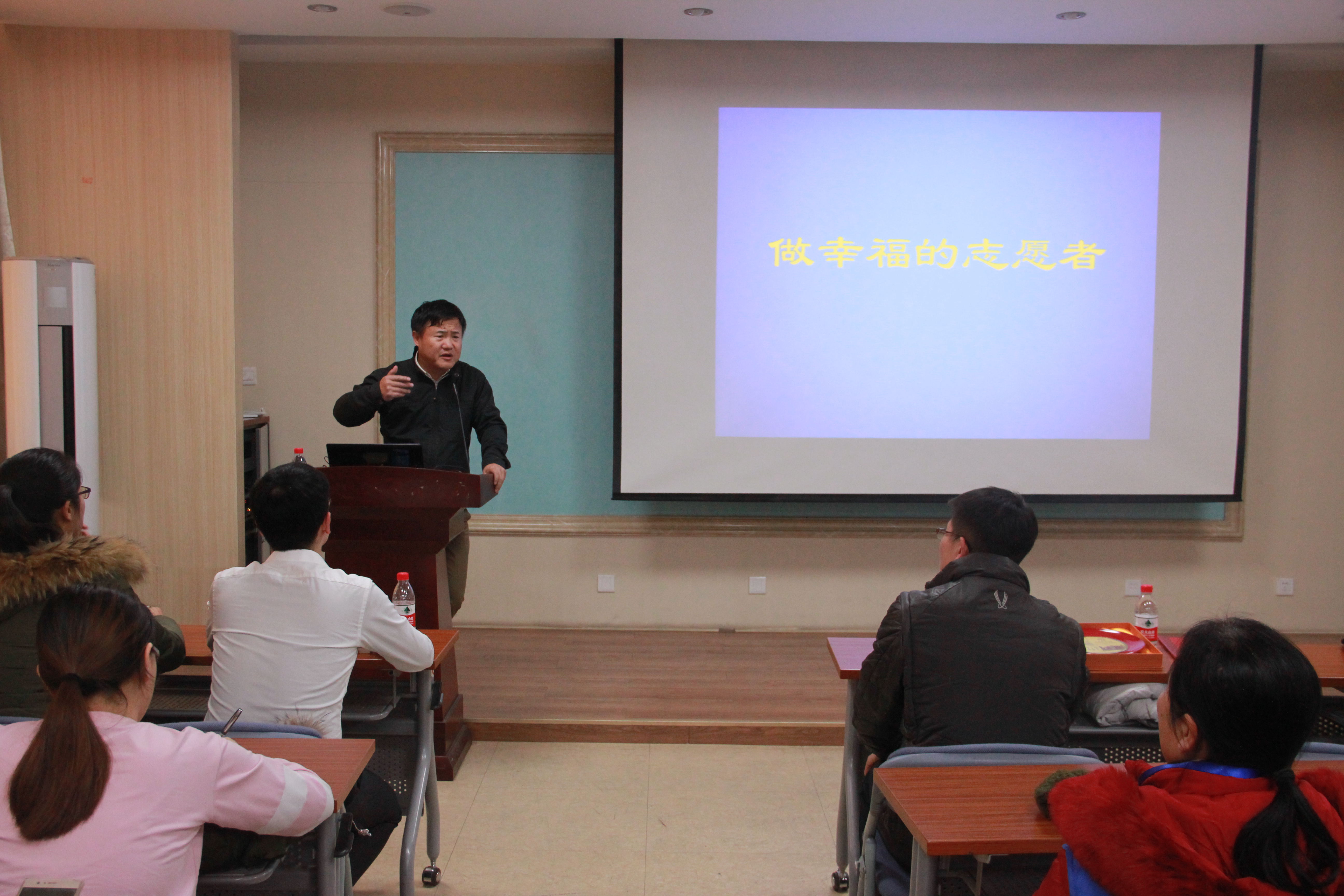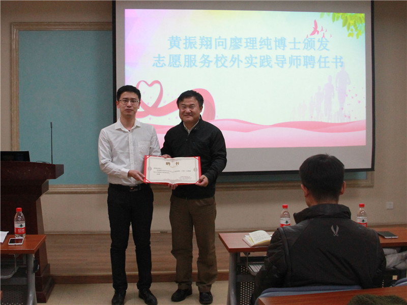 (摄影 张志远) 12月20日下午,大禹志愿服务工作室举办“做一个幸福的志愿者”专题研讨会,邀请到“首都道德模范”廖理纯博士作主题报告。水院副院长华博出席会议,学生教育管理科科长、大禹志愿服务工作室负责人黄振翔主持会议,分团委书记王胜男、学生教育管理科老师刘宁、张庆辉,北京地铁16号线六道口站站点部分志愿者及学院学生100余人参加。 黄振翔简要介绍了大禹志愿服务工作室的基本情况,感谢廖理纯博士支持学院公益类的活动,应邀分享十九大精神学习体会以及多年来对志愿服务的认识和理解,并代表工作室向廖博士颁发了志愿服务校外实践导师聘任书。 华博向廖理纯博士赠送了纪念品。他对廖理纯博士和校外志愿者朋友们的到来表示热烈的欢迎和感谢,对廖博士的先进个人事迹深表感动。他希望参加交流研讨的工作室成员和同学们能够紧扣“做一个幸福的志愿者”这一主旨,认真学习借鉴、独立思考,通过系统地实践提高本领,努力成长为“有理想、有本领、有担当”的新时代青年。 “从沙漠变成绿洲”的志愿服务过程一路走来并不平坦,2004年起投身公益事业,参与沙漠植树;“从种树讲到幸福”的亲身实践感悟,给现场听众带来环境保护的理念和志愿服务的感动。廖博士从坚定理想信念开始谈起,结合那段努力奋斗的岁月浅议幸福、快乐、时光和追求,正确看待挑战、挫折甚至是失败,向在场的所有人讲述了一段真实的“创业”史,更展现了在困境中毅然不懈求学、励志自强的学子精神,让更多的人感到幸福,为国家生态环境状况的改善贡献出了一份力。廖博士特别提到,人们如何理解成功,如何理解幸福和事业,应该看他为绝大多数人、为大自然、为国家贡献了多少力量。 现场同学们纷纷表示,廖博士对于“绿水青山”的追求和贡献着实令人感动,对志愿服务社会有了更深一层的认识和理解,一定会认真学习廖博士坚定理想、迎难而上的志愿精神,传承弘扬“大禹精神”,今后更加努力学习文化知识,报效国家,响应党中央习近平总书记的号召,带头践行社会主义核心价值观,为美丽中国建设增添青年一代人的活力。 报告结束后,大禹志愿服务工作室成员与廖理纯博士围绕“开展好志愿服务工作”进一步座谈交流。廖博士介绍了志愿者招募工作相关程序和注意事项,还分享了在志愿过程中遇到的困难和应对措施,对组织开展环境保护层面的志愿活动提出了宝贵中肯的意见和建议,双方还就下一步结合水院学科特色开展水保护水治理方面专业志愿服务进行了探讨。 [实习学生记者 张志远 报道] [编辑 李智] 审核 闫婷婷 黄振翔