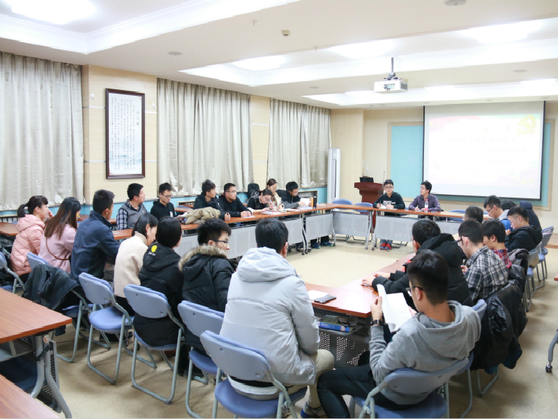 (摄影:张帆) 11月27日晚,2017级博士班在水院楼304召开“新时代下的博士生”主题班会学习十九大精神。 会议由班长李敬军主持,学院党务秘书、学生教育管理科科长黄振翔应邀出席了班会。李敬军说,此次班会旨在通过对十九大精神的学习加强青年学生的责任感使命感以及对社会主义核心价值观的理解和实践。 班级同学依次发言,交流分享学习十九大精神的理解和感悟。姚珍珠结合自己的研究方向谈到“学习十九大精神很重要,同时在其引领下运用到实际学习工作中更重要”;庞凯文结合身边的变化谈了对于“社会主要矛盾的转变”的感受;张同对“文化自信”发表了看法;王云玲提出了“科研最终只有落地才能真正为社会发展做贡献”的观点,王薇表达了“博士研究生的科研是具有前瞻性的,是和社会发展的目标息息相关的”理解;孟潮彪分享了参观“砥砺奋进的五年”成就展的自豪和激动之情;杨伟才谈到了“科技创新”对于国家发展的重要性;韩信提出了新时代下如何理解和践行“为中华之崛起而读书”;张帆引用康绍忠院士“做大田实验同学的论文应该写在大地上”这句话,希望大家在科研中求真务实等。 黄振翔在同学发言过程中结合自身对十九大精神的理解进行了点评交流,他说博士研究生是落实国家创新驱动发展战略的中坚骨干力量,同学们在埋头潜心科研的同时不要忘记抬抬头看看路,十九大精神就是最好地指引专业研究方向的指南和纲领,要把研究和实现中华民族伟大复兴的“中国梦”结合起来,真正能够做国家发展做出贡献。黄振翔强调,博士研究生同学要注重从十九大精神中汲取灵感和力量,对于十九大精神的学习,不是一朝一夕的事情,需要长期学习,坚持学习,做好榜样带动身边的学弟学妹共同学习,在思想上提高自己的政治觉悟,顺应新时代下中国特色社会主义事业发展的需要,真正为祖国的建设发展贡献自己的一份力量。 会议最后,李敬军总结说博士生群体在勇攀科学高峰的同时,有责任有义务扛起祖国科技创新发展的大旗,号召全班同学以实际行动使中华民族更加坚挺的屹立在世界民族之林,并用“青年兴则国兴,青年强则国强”结束了此次班会。