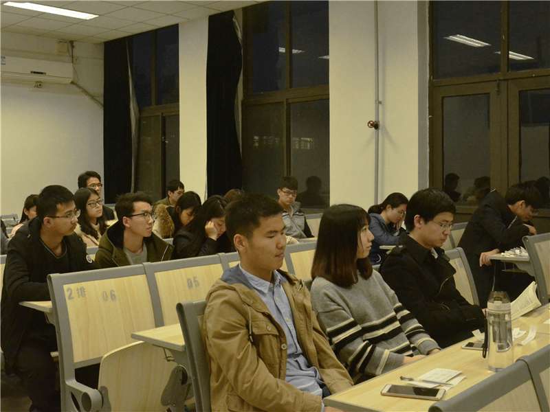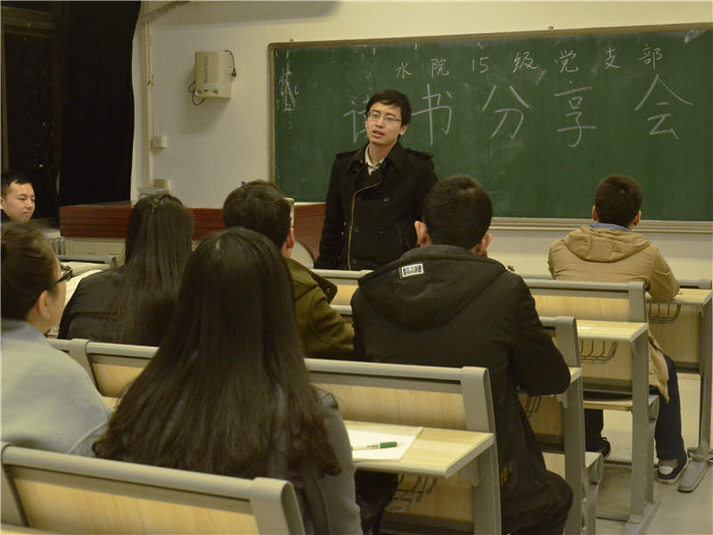 (摄影 赵萍楠) 2017年3月26日18点30分,水院15级党支部读书分享会在一教316准时开始。水院分团委书记黄振翔,学生教育管理科老师鲁萍以及15级党支部成员们出席参加了这次分享会。本次分享会由15级党支书郝泽主持,分享的书籍是《万历十五年》。 首先上台进行分享的是卢娜。她用严谨认真的语气表达了她对这本书的感受。在她的论述中,大家体会到她对《万历十五年》深刻的感触。之后,朱能杰上台讲述他对于《万历十五年》这本书的感受。他表示,他在这本书中找到了唯物辩证法的身影,并通过唯物史观和唯物辩证法,引申到了党的十八届五中全会提出的创新、协调、绿色、开放、共享的五大发展理念。此外,他还提到了高薪养廉和道德与法制等这些方面的内容。第三个上台分享的林学吉也发表了自己的见解。他认为这本书讲述的内容比较学术,是一本严肃的书。然后,他对比了中国与美国对于民主不同的理解与做法,言语之间也透露出他对这本书独特的看法。接下来上台的卫文婷则将《万历十五年》中的官员分别与神话故事中的人物进行了匹配。她深刻剖析了张居正、申时行、海瑞以及戚继光这四个人的为人处世风格,以及他们的优缺点,也讲述了当时明朝的发展情况,讲述得十分犀利。第五个上台分享的郝泽对这本书也有自己独到的见解。他认为历史上的种种失败归根结底是制度的问题,与之紧密相连的还有法制。他认为《万历十五年》中历史悲剧造成的原因在于历史上以道德伦理代替法制的模糊管理,现今社会应该提倡依法治国。此外,他还提到了最近热门的辱母杀人案。最后一个上台分享的徐浩林则着重论述了他对张居正的看法。他提到在不同的书中对于张居正的评价都各不相同,而张居正所提倡的改革虽然在当时是必要的,但是过于独断专行,因此最后失败也是必然的。 最后,黄振翔进行分享会总结。他结合具体事例说明了古今中外民主的差异以及对民主政治制度的理解,鼓励在座的党员们加强制度自信、道路自信、理论自信和文化自信,充分发挥先锋模范带头作用,努力成长成才,今后积极参与国家的建设与发展。在20点整,本次分享会圆满结束。