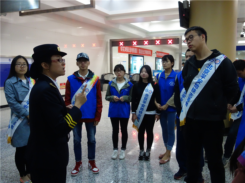 (农水151班 供图) 2017年4月16日和23日,农水151班的同学们分为两批前往地铁站参加志愿活动。此次志愿活动是北京平安地铁志愿活动的一个组成部分。同学们自行分成4个小组,分别前往地铁15号线的清华东路西口站、六道口站、北沙滩站和奥林匹克公园站进行引导志愿活动。 据了解,北京地铁公司平安地铁志愿服务总队自2015年9月开始面向全市招募平安地铁志愿者,为了方便志愿者参与,创新志愿服务模式,将以往固定时间、地点的传统志愿服务模式,变为利用志愿者(乘客)在上下班通勤时间,随手开展志愿服务,在乘车过程中自觉维护地铁乘车秩序,自觉维护地铁站车环境;带头参与,广泛宣传地铁安全乘车和文明乘车知识等活动。成为地铁安全运营的安全员、运营秩序的维护者、突发事件处置的协助者、可疑人和可疑物的发现者报告者,以及乘客自助服务的引导者指导者。 上午9点半,参与活动的同学们就早早集合准备前往地铁站。地铁站的工作人员认真向同学们介绍了他们将参与的活动,其中包括引导乘客使用自助售票机、帮助身体不便的乘客提行李等。在地铁工作人员耐心的解说后,同学们纷纷表示能够承担起这份义务,并会尽力做到最好。10点左右,志愿活动正式开始。同学们戴着志愿活动的标志来到售票机和安检机旁边,随时准备为有需要的人帮忙。 在接下来的两小时内,同学们用温声细语为第一次接触售票机的乘客购买地铁票,为换乘的乘客们指路;用可靠的双手帮助行李过多的乘客运送行李。当有人询问地铁的路线时,同学们都认真回答,耐心帮助。偶尔有外国友人咨询问题,也有同学积极上前进行翻译。短短两小时,同学们帮助了许多困惑的乘客,为他们解决了许多问题。 中午12点,本次志愿活动就正式告一段落。参加志愿活动的同学们纷纷表示,他们通过这次志愿活动更加深刻地了解了地铁内部工作的不易。同时,他们也表示,乘客的认可与肯定才是志愿者最珍贵的回报。当他们推送老人寻找无障碍客梯,当他们来回奔跑为乘客查询路线方位,当他们为乘客退还买票后,乘客的一个颔首,一个微笑,一句谢谢,无一不让他们感觉到为大家服务的快乐。