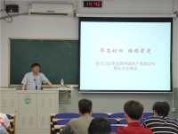 (摄影 崔志政) 5月13日,水院发展对象党课在二教211正式举办。主讲第一课的老师为来自马克思主义学院教授李明。同时出席本次党课的还有学生教育管理科老师鲁萍。此次业余党校的举办是为了加强入党积极分子对理论知识的学习,提高水院同学的思想政治素养,同时为党组织培养、输送更多政治作风过硬、理论素质过硬的优秀青年后备人才。李明在课程中主要讲述了从《共产党宣言》到中国共产党新发展的过程。 课程一开始,他就让同学们填写关于马克思主义、《共产党宣言》的问卷。随后,他由问卷展开,从当代大学生接触马克思主义书籍的比例拓展到《共产党宣言》的重要性。他指出,《共产党宣言》是一本值得大家数遍精读的经典文章。同时,他也提到有“工人阶级的圣经”之称的《资本论》一书。在介绍书籍时,他指出《资本论》揭示了资本主义发展的规律,是了解《共产党宣言》的基础。同时,他还反复强调了重读经典的重要性。 接下来,他主要讲解了《共产党宣言》在中国传播的过程。他以自身为例,讲述了马克思主义思想对个人行为的影响。其风趣幽默的讲课风格,生动详细的讲解,赢得了学生们的阵阵掌声。随后,他强调勤奋工作,勤奋学习才能成为更好的自己,成为一名优秀的共产党员。临近结束时,他表达了对同学们的殷切期待,即加强理论修养,提升思想境界,成为一个理论清楚、人格高尚、情操伟大、信仰坚定、思想先进的真正的中国共产党员。 至此,本次水院春季发展对象党课的第一课正式落下了帷幕。