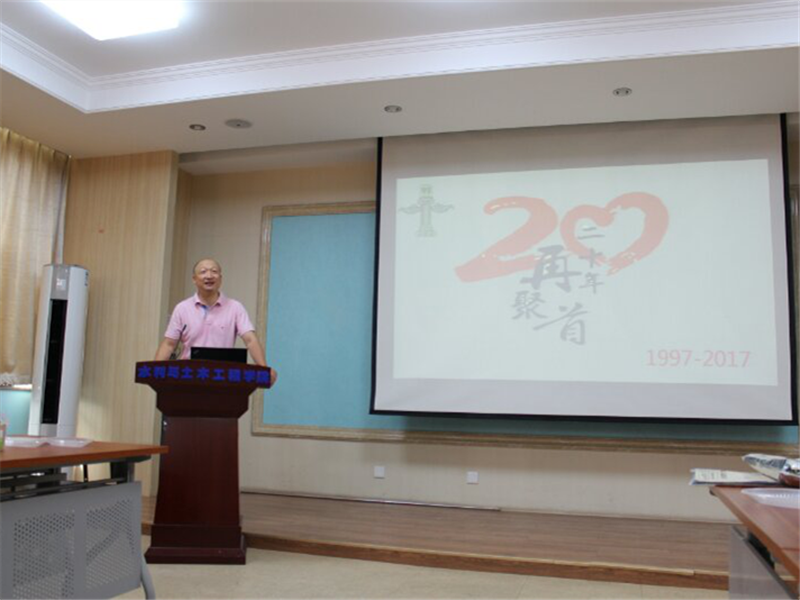 2017年8月19日,水院30名工民建93级校友回到阔别已久的母校,忆同窗过往、谈人生感悟、许美好明天、欢庆毕业二十周年。水院院长严海军、党委书记沈立峰,工民建93级班主任剧锦三以及部分专业教师等受邀出席了此次活动。水院校友、教务处副处长汪九林,工民建93级校友、后勤基建处副处长韩丰等参加了庆祝活动。 上午十时,校友们在水院楼304报告厅齐聚一堂。校友代表彭凌主持聚会并致开幕辞,随后介绍了出席活动的学院领导及列位恩师。会上,校友们通过让子女代表向恩师们献花束、全班校友再向恩师深鞠躬,共同表达大家对全体授业师者的感谢和祝福。 严海军代表学院对校友返校表示热烈欢迎,向校友们介绍了水院的发展情况。他指出,一别二十载,学院方方面面都取得了可喜的显著提升。他还提到,明年是水院建院60周年,希望五湖四海水院校友都有机会参加这一光荣的纪念活动。最后,他衷心感谢校友们心系母校、情系水院,希望校友们继续支持学校,支持水院建设,并对校友们表达了美好的祝愿。 工民建93班主任剧锦三教授发言,在这次时隔了20年的主题班会上,他对校友们的到来表示热烈欢迎,对大家在各自岗位上取得的建树表示欣慰。剧老师期盼校友们未来能取得更好的成绩,也祝愿他们身体健康,工作顺利。 与会人员相约参观了校园,并合影留念。至此,本次庆祝活动圆满落幕。
