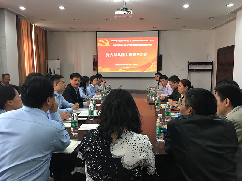 4月25日下午,北京市南水北调大宁管理处河西综合泵站党支部一行党员在党总支副书记刘金书带领下前来太阳官网与水利系教工党支部开展“以党建促业务”主题共建交流,水院党委书记沈立峰应邀参加了共建活动,会议由水利系教工党支部书记苏艳平主持。 双方分别介绍了参加活动的人员,会议在一片热情真挚的氛围中开始。沈立峰代表学院对来访客人表示热烈欢迎,并从学院发展历史、党委基本情况、党委作用发挥、人才培养和教学科研等方面介绍了水院概况,他说,今年是贯彻党的十九大精神的开局之年,恰逢水院60周年院庆,学院一直以来以立德树人为己任,培养了大批优秀的水利人才,很多在工作岗位上都做出了突出的成绩,今天返校参加此次活动的就有优秀校友的代表,希望与大宁管理处加强基层党建工作的学习交流。苏艳平介绍了支部在民主生活学习、党建活动交流、理论学习与教学科研实践相结合等方面的情况,倡议校地合作、共谋发展。 刘金书对水院的热情接待表示感谢,并介绍了大宁管理处“学习为先导、服务为主线、制度为抓手、活动为载体、监督为常态”的党建工作做法和特色,并期待与水院在党建工作、课程实习等方面开展更多深入的学习共建。在交流环节,双方就学习贯彻党的十九大精神、两会精神、党日活动开展等内容进行了热烈讨论。 水院党委委员、党务秘书黄振翔,水利系教工党支部副书记刘浏,宣传委员熊云武,水利系主任霍再林、副主任袁林娟、韩宇,水利系邱流潮、谢恩、赵枭参加了共建交流活动。