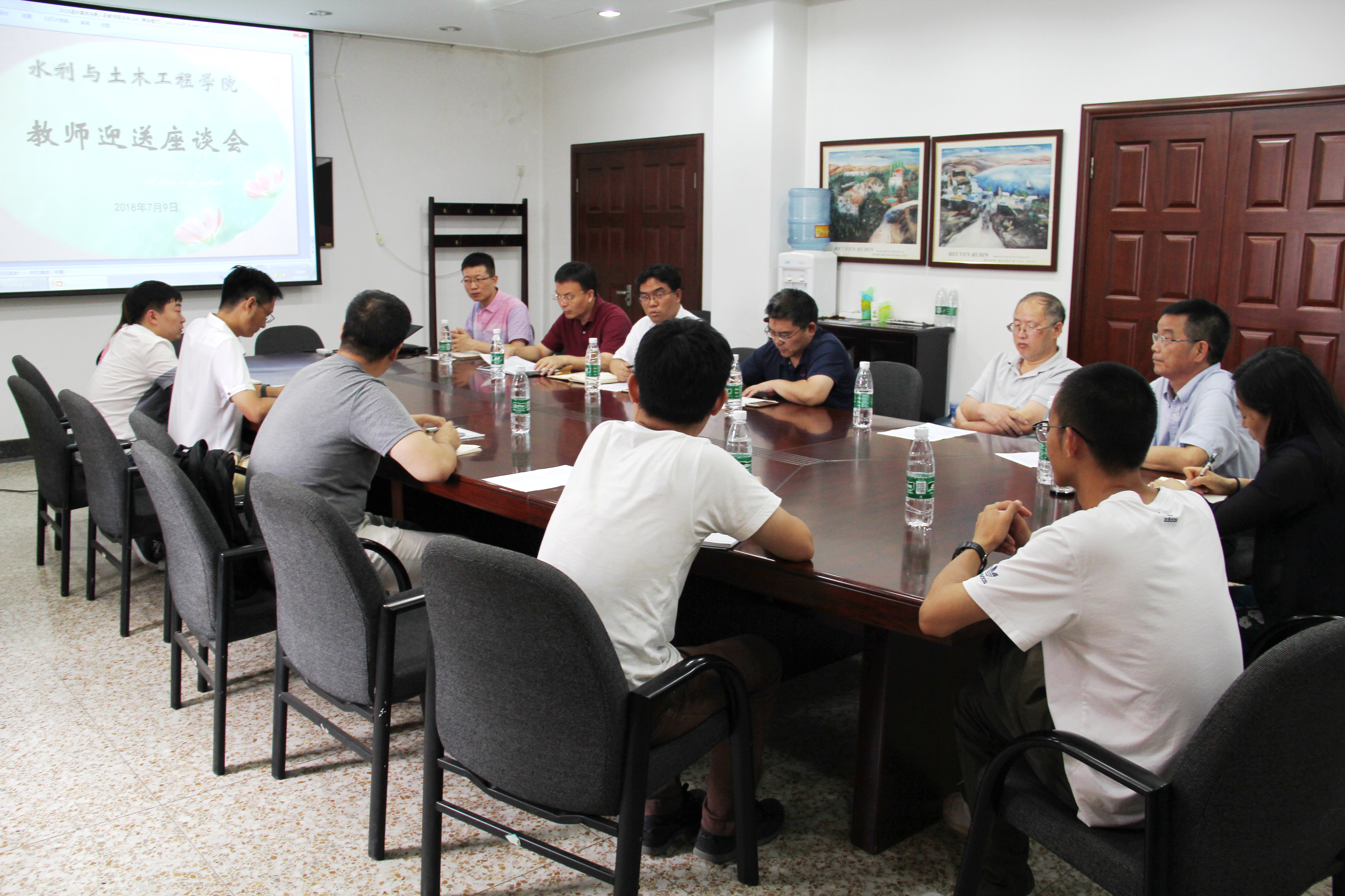(摄影 闫婷婷) 7月9日下午,2018年度教师迎送座谈会于中以楼二层会议室召开。分党委书记沈立峰、院长严海军、副院长李云开,部分退休、离岗及新入职教师参加会议。分党委副书记兼副院长华博主持会议。 迎来送往,情深意浓。参加会议的水利工程系雷廷武、唐泽军两位教授因年龄原因离开教师岗位;辅导员底绍涵、刘宁两年工作期满离开专职辅导员岗位;法科宇、郑亮和张泽林是今年即将入职的讲师;王雨泉和高芮是即将上岗的专职辅导员。 沈立峰感谢雷廷武教授、唐泽军教授多年来教书育人,辛勤耕耘,在学院人才培养、学科建设等方面做出的突出贡献,他希望两位老师多向后辈传授分享经验、提供具体指导,同时为学院面临的新发展任务出谋划策。他还充分肯定了刘宁、底绍涵两年来在辅导员岗位上的辛勤付出,希望他们能在求学期间继续发挥学生骨干作用。沈立峰对即将入职的各位老师表示欢迎和祝贺,希望他们早日融入水院大家庭。 严海军指出,学院每年通过组织教师迎送座谈会、离退休老同志座谈会等特色活动,送退休离岗教师、迎“大家庭”新的成员,迎送会已经成为学院“家风”的保留项目。他回忆了与雷廷武教授、唐泽军教授的共事经历,对两位老师退休后继续研究工作给予了充分肯定,预祝他们对学院发展发挥出更大作用。严海军对即将入职的三位老师和两位专职辅导员老师表示欢迎,希望他们快速熟悉岗位工作,担起立德树人的重任。 李云开、华博表达了对雷廷武、唐泽军两位老师的不舍、感谢和祝福。 交流环节,雷廷武教授为大家讲述了个人求学从教的几段经历,着重回顾了他和同事们在艰苦条件下坚持探索教学和科学研究的难忘经历,他鼓励青年教师把握新时代的发展机遇,勇于承担重任,不畏眼前的困难和挑战,潜心钻研,为学院发展多做贡献。唐泽军联系学习和工作的经历向雷老师表达了敬意和感谢,他在会上谈到了在学院工作的一些体会和感悟,希望青年教师能够用实际行动积极融入岗位,融入学院大家庭。底绍涵感谢学院的信任和支持,他表示两年的历练经历宝贵而难忘,希望有更多机会向各位老师继续学习。 法科宇、郑亮、张泽林、王雨泉和高芮热情参与交流互动,还认真记录下了有关内容信息,他们先后介绍了个人情况,一致表示将在今后的工作中学习借鉴各位前辈、同事的经验和嘱托,多学习、勤思考,力求为学院事业发展贡献一份力量。 学院办主室主任戈志奇等参加座谈。 编辑 闫婷婷 审核 闫婷婷 华博