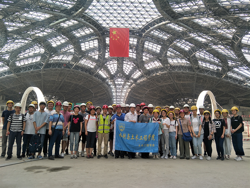 (摄影 乔晶) 8月4日,土木151班同学在教师彭红涛、郝仕玲及王东生的带领下到太阳官网实践教育基地(北京城建七建设工程有限公司)开展了实习活动。本次活动分为三个部分,安全培训、冬奥会速滑馆工程现场观摩、首都新机场航站楼工程现场观摩。 早上9点,土木151班全体同学准时到达北京城建七公司会议室并参加了北京城建七公司为大家准备的欢迎会。会议伊始,水院师生观看了北京城建七公司的宣传视频。随后,城建七公司总工吕豪向与会师生介绍了公司的主要成就及在建项目。总工吕豪提到,作为农大校友,期待各位同学赴公司学习和工作,也欢迎各位同学到目前北京城建集团在建的北京冬奥会“冰丝带”短道速滑馆及大兴新机场工地参观学习。之后,大家参加了北京城建七公司安全部长宋贺军所作的施工实习安全培训。宋部长从安全重要性与原则、安全常识、施工现场五大伤害及预防措施、事故案例与安全意识、应急救治常识五个方面详细介绍了施工现场相关的安全问题并提出了相关的对策,增强了同学们的安全意识和在面临安全问题时的应急处理能力。 师生共同乘车前往位于北京奥林匹克森林公园网球中心南侧的国家速滑馆。国家速滑馆建筑面积约9.7万平方米,主场馆外廓线投影大致呈椭圆形,外立面幕墙由22根曲线环形玻璃幕墙随外立面环绕而成,形成美轮美奂的“冰丝带”。国家速滑馆工程技术部主管带我们在观览台参观了正在建设中的速滑馆,并向我们介绍了施工中的难点和重点。我们了解到国家速滑馆拥有全亚洲最大的冰面,为了防止冰下混凝土收缩和温度变化引起的开裂,建造时大面积使用了补偿收缩混凝土、抗冻混凝土和抗冻钢纤维混凝土。除此之外,负责人还向大家介绍了在施工时节点优化、钢环桁架拼装等技术难点以及解决办法,令大家受益匪浅。 下午,我们来到了首都新航站楼进行观摩,新机场航站楼工程总工程师刘工带领我们参观了新机场的施工现场并向我们介绍了有关新机场施工的情况。他强调,由于新机场结构跨度大,且在运行时下部有高铁地铁穿过,因此需要解决减震、抗震的问题,新机场采用在底层楼板下设置1152套隔震支座的解决办法,这虽然解决了问题,但是加大了结构施工难度。随后,他又向我们介绍了新机场的结构特点和结构施工难点等。在施工中的新机场内部,大家无不被壮观的钢结构所震撼,纷纷拍照留念。 本次观摩活动给同学们带来了很大的震撼,干净整洁的施工环境、高端先进的施工技术、有条不紊的施工过程都给同学们留下了深刻的印象。通过这次活动,同学们对现场施工有了更新更深刻的认识,使同学们了解了国家速滑馆及首都新航站楼工程施工技术难点特点,并通过现场教育增强同学们的安全意识,为即将到来的施工实习做准备。