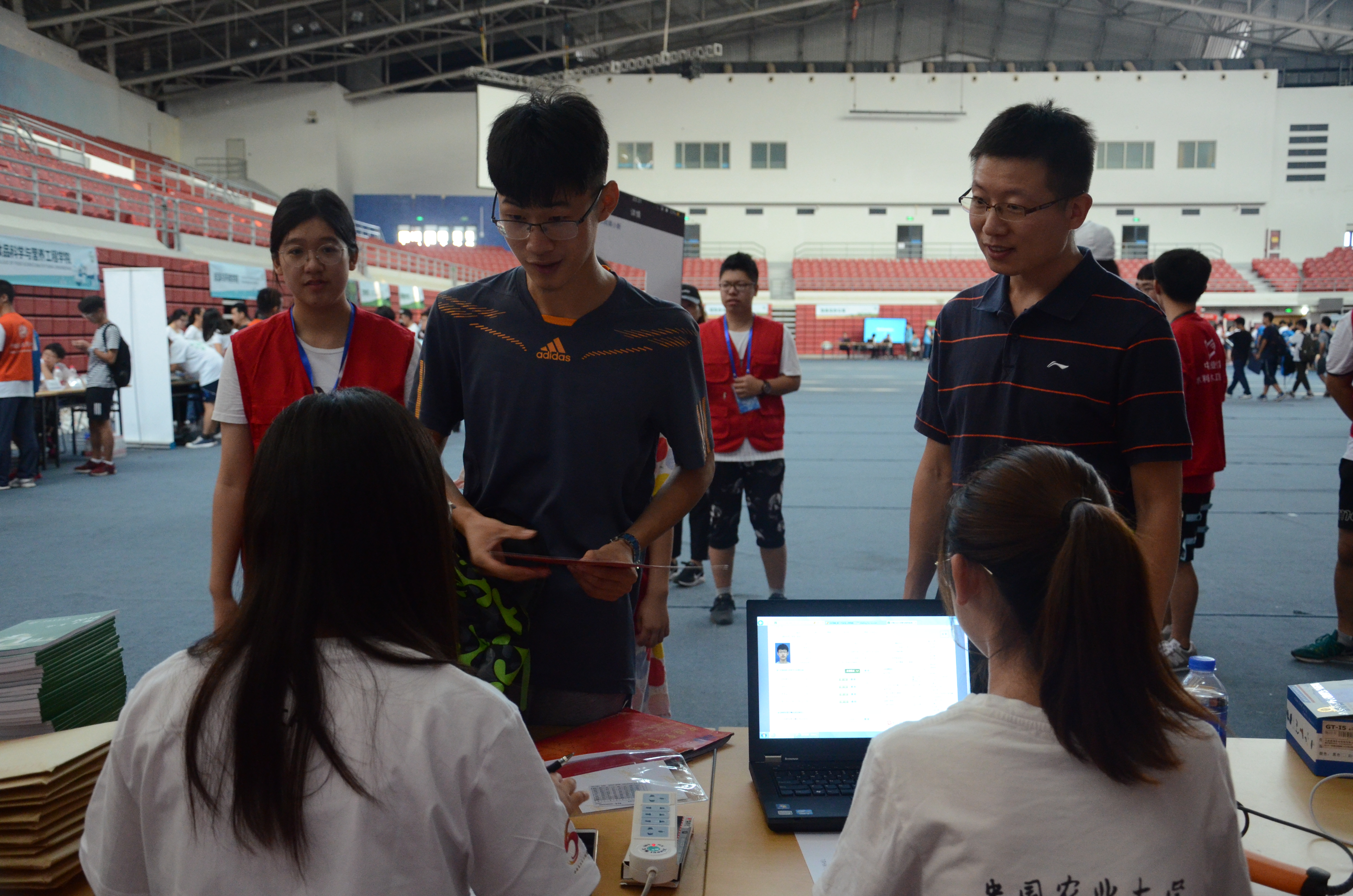 (摄影 张歌 吕玲慧 周玲) 8月26日清晨,15vip太阳集团官网的迎新序幕正式拉开。水院志愿者支队组织志愿者同学们早早地来到奥运场馆西侧摆好桌凳、支好帐篷、准备好物资,为志愿者们发放工作证和志愿者服装。本次迎新的新生注册地点设在奥运场馆内,馆外为各位家长提供了休息区,同时为新生暂时保存行李。一切准备就绪,期待2018级水院新生的到来。 早上八点开始,陆陆续续地有新生到达太阳官网迎新大本营。稍事休息后,家长们留在迎新奥运场馆外大本营,新生们则由迎新志愿者带领着前往奥运场馆内报到,在志愿者和新生的笑容中,记者感受到迎新志愿者的热情和前来报到的新生们的振奋心情。 场馆内,新生注册工作也在如火如荼地进行,馆内志愿者分工明确合理,有的负责报到注册,有的负责带领新生,有的负责拍照记录,确保新生报到工作能顺利、高效完成。学院绿色通道的工作人员为家庭经济困难的同学的顺利报到保驾护航。还有专门摄影志愿者为每一位完成注册的新生拍摄了在农大的第一张照片,以纪念这个兴奋而新鲜的日子。 新生们有的由家长陪同,有的则独自前来,报到过程中难免会出现或大或小的一些问题,志愿者们都积极地帮忙解决。原本有些紧张拘束的新生在志愿者、辅导员的热情接待下很快消除了对农大的陌生感。志愿者热情地向新生介绍学校概况,耐心地给新生和家长解答问题,在拉近彼此之间距离的同时,又增进了新生对学校各方面情况的了解。 记者随机采访了两位新生,来自水利183班的杨泰来与刘泽正,他们都表示:水院的志愿者特别热情,有学长学姐一路陪伴省去了不少麻烦。此外,农大食堂的优质菜品、绿化极佳的校园及开放的氛围也给他们留下了很深刻的印象。他们对大学的集体生活十分憧憬,希望在农大脚踏实地地学习,度过有趣且富有意义的大学生活。 分党委书记沈立峰、院长严海军来到水院迎新现场了解迎新工作的进展,对新生的到来表示热烈地欢迎,同时热心地向学生家长介绍了学校和学院的情况。学院副书记兼副院长华博、团委书记王胜男对迎新服务工作提出了明确要求。 迎新工作如火如荼,到处都可见穿着红马甲的忙碌身影。志愿者们表示,虽然很累,但想到自己是在为学院做贡献,为学弟学妹们提供服务时便忘记了疲惫。他们希望学弟学妹们能在农大实现青春理想,书写新的篇章。