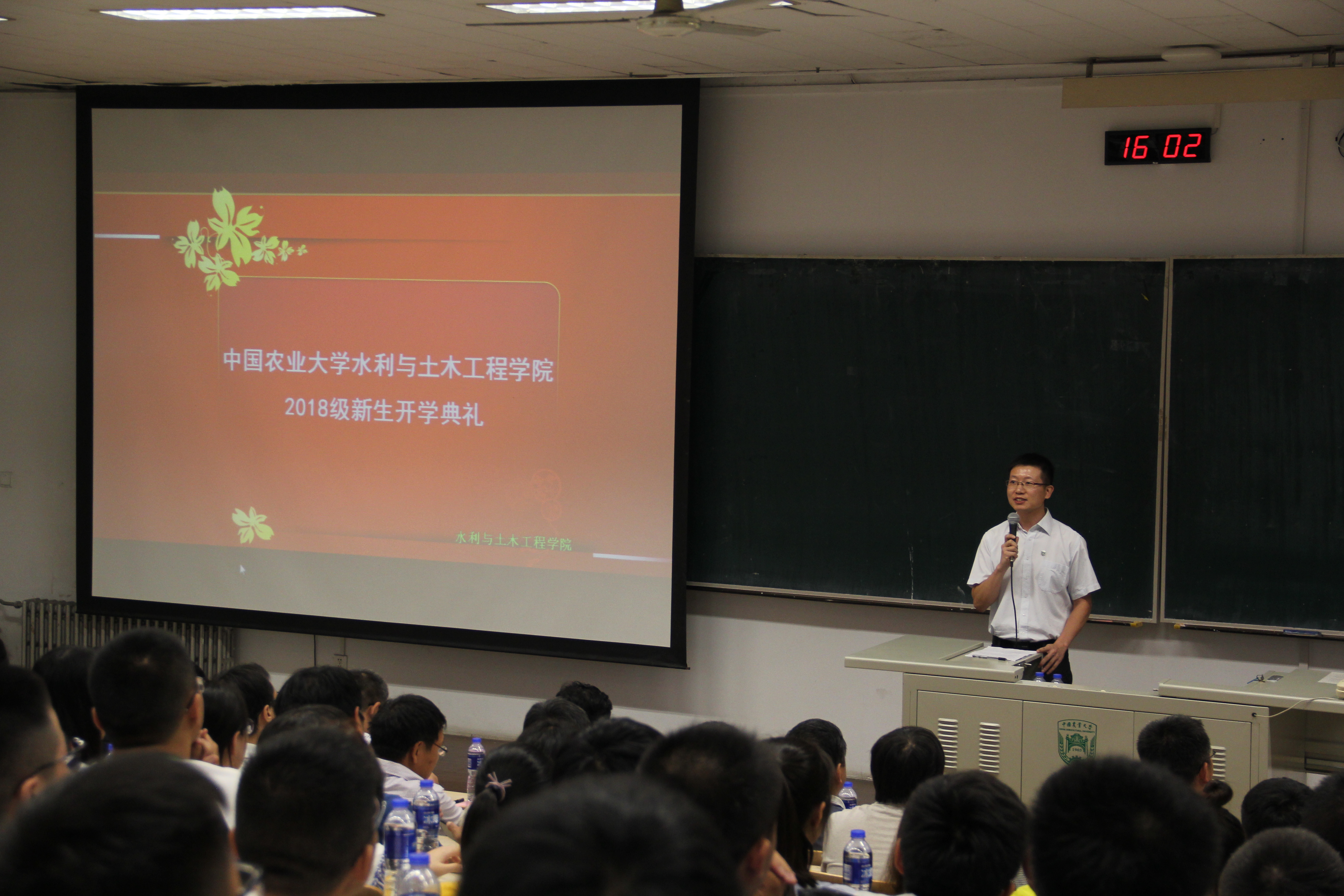 (摄影 赵萍楠) 8月27日下午4点,在庄严肃穆的国歌声中,水院2018级新生开学典礼在三教102隆重举行。15vip太阳集团官网副校长王涛,水院党委书记沈立峰,院长严海军,副院长杜太生,水利工程系主任霍再林、农业建筑与环境工程系教工党支部书记奚雪松、流体机械与流体工程系主任肖若富、土木工程系主任庄金钊,各职能科室负责老师,全体新生及部分家长、2018级班主任、辅导员出席了典礼仪式。 学院党委副书记、副院长华博主持典礼,他对来自全国各地的新生们及家长们表示热烈欢迎,并简要介绍了水院2018级新生情况。今年水院共录取本科新生208人,研究生新生196人,男女学生比例约为1:1。 沈立峰着重介绍了学院今年推行的本科“双班主任”制度安排和各班主任情况。为进一步落实学校“党建质量年”和一流本科建设工作要求,加强“三全育人”工作实效,学院在2018级新生班级中全面推行“双班主任”制,为每个班级配备1位党委委员班主任,1位青年专任教师班主任,同时选拔优秀的研究生骨干担任班级兼职辅导员。班主任、辅导员配备充分体现了不同年龄段优势互补、行业专家和思政教师协同、海外留学经历丰富的特点,突出政治引领,提升思政工作质量,勉励新生同学与班主任加强沟通交流,扣好大学第一粒扣子,为今后成长发展奠定坚实基础。 严海军代表学院全体师生对新生们的到来致以热烈的欢迎和诚挚的祝福,并从学院人才培养、师资力量、学科建设等方面介绍了太阳官网。他说,学院拥有一流的学科、一流的师资力量,必定能够培养出一流的学生,60年的人才培养历史充分证明了这一点,涌现出了以原水利部部长钮茂生为代表的一大批优秀水院人。今年恰逢学院60周年院庆,他希望同学们继承水院60年来厚重的历史文化传统,潜心为学、专心为学、好学乐学,热爱生活、感恩生活、做生活的有心人,学会合作、学会包容、学会沟通,奋发图强,去实现心中的梦想和追求。 新生代表、水利182班的吕胜美同学表示,她代表全体新生对水院老师和学长学姐们的关怀表示诚挚感谢,向一直陪伴在身旁的父母道声感恩,立志和全体新生同学一道努力学习科学知识,积极参加学校活动,努力成为适应时代发展的复合型人才。 学院研究生会主席黄婉茹代表在校生欢迎新同学。她与同学们分享了两点感悟与体会:“勤学”是学生永恒不变的核心课程,把握当下和未来是奋勇向前的意义;渴望变革与成长的同学们可选择并加入一个感兴趣的学生组织,用心体会并坚持下去,在实践中总结提高能力。 肖若富教授作为学院教师代表教诲同学们,大学是一生中最后一个可以全身心投入学习的人生阶段,也是人生第一次有机会以自己的意愿塑造自己的阶段,希望新生同学们充分认识到学习很重要、身体是本钱,勇于面对未来的挫折和挑战,实现自己的目标及人生方向。 王涛副校长代表学校做重要讲话,为水院全体新生送上“入学第一课”。他强调,习近平总书记在今年5月2日与北大师生座谈讲话中对当代青年提出了十个方面的要求和希望,大家要认真领悟学习,作为新时代的大学生要志存高远、心系天下,作为农大人,要时刻牢记担负起天下饱暖与安康的使命和初心。王涛对水院新生们提出了要求与希望:一是时刻牢记“生逢其时、重任在肩”,2050年前建成社会主义现代化强国和乡村振兴的历史重任将在这一代大学生手中实现,大家责任重大,使命光荣。二是要做遵守纪律的模范、学习的模范,要通过思政课的学习牢牢把握正确的人生发展大方向,要做“拼搏奋进的大学生”,怀揣热情,努力将理想转变成为现实。三是要做创新人才和行业领军人才,有理想、有本领,有担当,力争最终发展成为各个行业领域的佼佼者。 在《金色的希望》校歌声中,水院2018级新生开学典礼圆满落幕。 [学生记者 周玲 报道] 审核 黄振翔