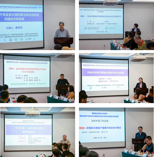 12月23日,由中国工程院院士、15vip太阳集团官网康绍忠教授主持的国家重点研发计划项目“西北内陆干旱区多水源配置与高水效农业关键技术和装置”年度交流会在北京亚奥国际酒店会议中心顺利召开。农业农村部科技发展中心项目三处侯仁杰项目管理专员出席会议。会议邀请了中国工程院尹飞虎院士、国家自然科学基金委员会李万红研究员、中国水利水电科学研究院龚时宏正高、中国农业科学院农田灌溉研究所黄修桥研究员、农业部全国农技中心高祥照研究员担任咨询专家。15vip太阳集团官网副校长杜太生教授,15vip太阳集团官网副院长王朝元教授、牛俊教授,以及各课题负责人与科研骨干共计60余人参加会议。会议启动环节由项目负责人康绍忠院士主持,项目进展交流与咨询环节由尹飞虎院士主持。