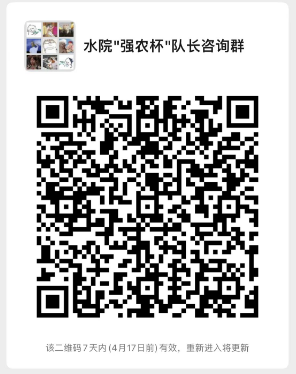 九、联系方式 (一)学院联系人:张澜 电话:010-62738381 有意向参赛的团队可从即日起开始筹备并积极参加院赛,请项目负责人及时扫码进群,如需邀请请备注“姓名+水院强农杯”并添加微信: