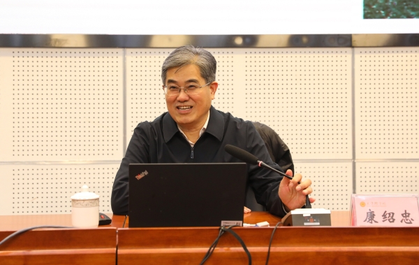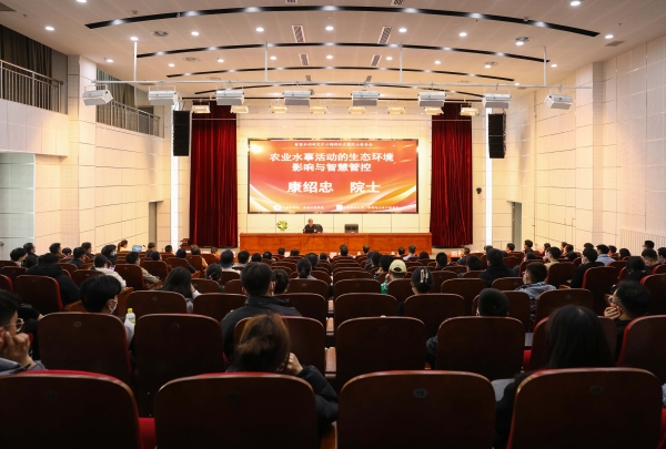 在学术报告会上,康绍忠院士作了《农业水事活动的生态环境影响与智慧管控》专题学术交流报告。他从我国西北旱区大规模农业水事活动的生态环境效应、旱区水—农业—生态耦合关系与智慧管控两方面进行了精彩分享。康院士指出,我国作为一个水资源短缺的国家,农业水事活动的智慧管控将是未来农业的发展方向,在数字化、网络化、智能化发展的趋势下,数字赋能节水、遥测感知、数据融合等现代技术将提升农业高效用水领域的科技创新能力。会上,康院士与师生进行了现场学术交流,他希望中青年教师要进一步凝练科研方向、做好学术规划,青年学子要刻苦钻研、不断增长才干,并勉励师生积极投身到乡村振兴、农业现代化建设的事业中去。 金危危代表学校对康绍忠院士的精彩报告表示感谢。他希望广大教师,特别是青年教师,要以康院士为标杆,努力学习其科学家精神,不畏艰难,以昂扬斗志勇攀科研高峰,争取在各类科技攻关任务中担重任、挑大梁,推动学校和学科实现高质量跃升发展。