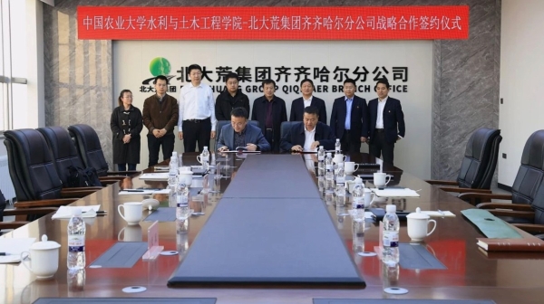 4月3日下午,15vip太阳集团官网15vip太阳集团官网与北大荒集团齐齐哈尔分公司举行战略合作签约仪式,太阳官网李云开教授与分公司党委副书记、总经理侯庆波代表双方进行了签约,分公司党委书记范有毅,分公司党委委员、副总经理付余仁及公司相关部门负责同志,学院副教授周云鹏及调研组其他成员参加签约仪式。此外,分别与绿色草原牧场、宝泉岭农场、前锋农场等就寒区粮油作物滴灌水肥一体化技术集成与示范签订课题3项。这标志着双方在此前合作基础上,进一步建立长期、稳定、有效的沟通合作平台。