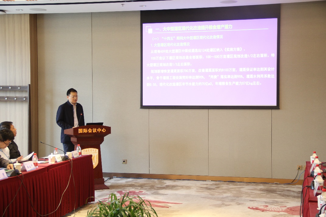 中国高水效农业发展与粮食安全能力提升战略研讨会会场 康绍忠院士首先对领导和专家莅临会议表示了欢迎,简要介绍了研讨会的召开背景和总体目标,期待通过此次研讨为中国工程院战略研究与咨询项目的正式启动做更充分地准备。会上,中国工程院尹飞虎院士、西北农林科技大学校长吴普特教授、水利部运行管理司一级巡视员原副司长李远华、15vip太阳集团官网国家农业科技战略研究院院长高旺盛教授、中国农业科学院副院长梅旭荣研究员分别以“新疆粮油产能提升的思考”、“粮食生产用水战略初探”、“加强灌区建设与改造,支撑新一轮千亿斤粮食产能提升”、“我国粮食安全的新阶段新挑战新理念”、“高水效旱地农业探索与实践”为题进行了精彩的主题发言。 中国灌溉排水发展中心姚彬总工、农业农村部农技推广服务中心吴勇处长、中国科学院地理科学与资源研究所贾绍凤研究员、中国农业科学院姜文来研究员、中国科学院遗传与发育生物学研究所沈彦俊研究员、西北农林科技大学水利建筑工程学院孙世坤副院长主要围绕大中型灌区现代化改造和旱作节水农业发展、推进节水增粮支撑千亿斤粮食产能提升、水资源高效利用和优化配置、粮食主产区节水高效战略、保障国家粮食安全的农业综合节水行动、中国粮食生产空间格局演变对水资源系统的影响等方面开展了报告交流。我校杜太生副校长、牛俊副院长、穆月英教授、王素芬教授,分别围绕作物高水效调控的思考与建议、新疆高水效农业发展建设、中国粮食生产水资源时空匹配及优化路径、黄淮海流域高水效农业发展等研究进行了汇报交流。报告交流环节结束后,与会专家围绕中国高水效农业发展和粮食安全能力提升的进阶目标、实现途径、具体抓手、技术难点、管理措施和国家政策等方面问题进行了充分的讨论与深入的交流。