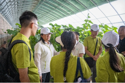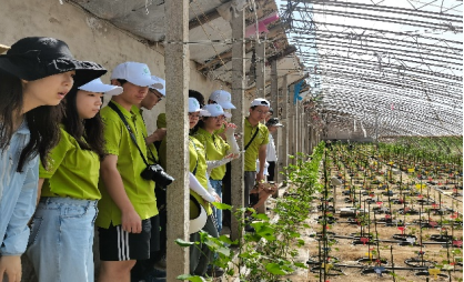 人工气候室模拟未来 自研产品——土壤中“行走”的机器人 下午,实践小队来到古浪县黄花滩移民点的现代化农业建设区,那里走出了一条贫困山区群众易地搬迁和生态环境保护双赢的脱贫致富新路,骄阳下鳞次栉比的温室大棚里种着当地政府与农户联合培育的小黄瓜和火龙果,还有号称“减贫能手”的小蘑菇。得益于现代化农业发展,当地企业“古浪越海”有限公司引进现代智能温室,开展规范化高品质樱桃番茄种植,依托最先进的管理、技术和设备,把高新技术与设施农业有机结合,实现了农业智能化管理、精细化作业、规模化生产。古浪越海也充分吸纳贫困家庭劳动力和农村富余劳动力,让群众就近就地就业,实现从普通农民到新型职业农民的转变,致富之路越走越宽。实践小队同学们充分感受到国家政策和农业现代化对乡村振兴的推动!