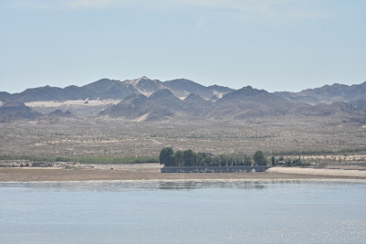 主要固沙技术讲解 沙咀墩示范区合影 在沙漠中点缀绿色的不仅有沙咀墩防沙示范区,还有红崖山水库。下午,“谷水兴农”实践小队便来到这颗瀚海明珠身旁,领略其耀眼光芒。红崖山水库始建于1958年,位于河西走廊东北部,处于腾格里和巴丹吉林两大沙漠的包围之中,是亚洲最大的沙漠水库。风沙无情,让腾格里与巴丹吉林沙漠不断逼近,红崖山水库像一个楔子,牢牢的阻断了两大沙漠合并。在习近平总书记的指示下,人们抱有“确保民勤不成为第二个罗布泊”之决心,砥砺前行。在红崖山水库的调蓄和滋养下,民勤得以冲出沙漠的包围,以水利民,经济蓬勃发展。它更像是一束光芒,指引着生态健康发展的绿色之路。而如今正如大家所见,通过跃进总干渠的输配水功能,红崖山水库主要发挥着农业灌溉和生态保护功能,兼顾防洪与供水的综合效益,持续改善民勤生态,重现了下游青土湖“碧波荡漾、野鸭成群、水草丰美”的景象!