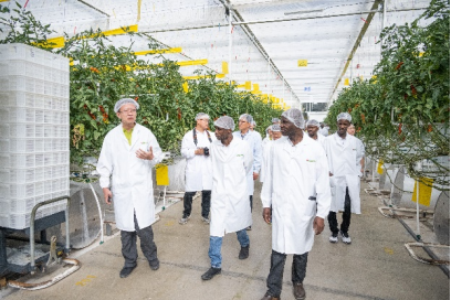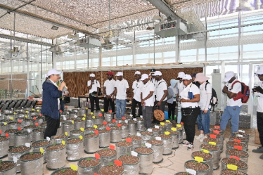 科技发力,赋能现代农业 从科研平台到生产一线,实践小队调研了当地多个农业企业。发放镇“甜美农业”是一家优质生产基地,历经数十年发展,目前已形成集种子研发、新品种引进、种苗繁育、技术服务、生资配送、产品购销为一体的全产业链模式。这里推行“一年四茬”西瓜高效栽培模式,推广运用标准化生产技术,提升了西瓜品质和市场竞争力,同时带动农民增收,推动现代农业发展。古浪县“越海农业”有限公司引进现代智能温室,开展规范化高品质樱桃番茄种植,依托最先进的管理、技术和设备,把高新技术与设施农业有机结合,实现了农业智能化管理、精细化作业、规模化生产。凉州区四坝镇“耕野源”农业公司也意识到农产品优质优价对现代农业的重要意义,通过积极发展订单农业、加大种质资源培育、提高农业科技水平来提高农业生产效益,增加农民收入。同学们在品尝甜美可口的樱桃番茄时,更在赞叹科技的进步,为农业赋上飞翔的翅膀,非洲留学生们表示希望将这些技术引进到自己的祖国。