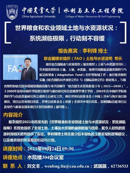 大禹高端讲堂:世界粮食和农业领域土地与水资源状况